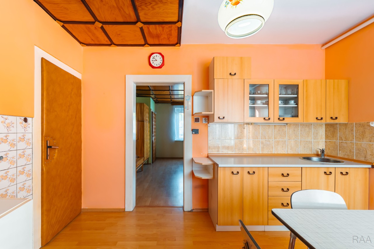 Nabízíme k prodeji prostorný byt 3+1 se zahradou a sklepem v menším cihlovém domě, v osobním vlastnictví, v Lutíně, 8 km od Olomouce. Bytový dům je samostatně stojící se 6 bytovými jednotkami. Každý byt má samostatný vchod z ulice a využívá část pozemku – zahrady. Byt je mezonetový, nachází se v přízemí a 1.patře dvoupodlažního bytového domu bez výtahu a má užitnou plochu 122,5 m² včetně vstupní verandy (2,12 m²) a sklepu v suterénu domu (41,69 m²). Dům byl postaven kolem r. 1940, je podsklepený, má 2 nadzemní podlaží. Dům je zděný a je po částečné revitalizaci: r. 2020 střecha vč. oplechování, r. 2018 nová plastová okna, r. 1986 napojení na plyn. V bytě proběhla výměna plyn. kotle v r. 2012, renovace koupelny a WC r. 2005 (obklady, dlažba, sanita), plovoucí podlaha. Elektro, odpady původní. V bytě se nachází vstupní veranda, předsíň, obývací pokoj, kuchyň s jídelním koutem (plynový sporák s el. troubou, dřez), samostatné WC s oknem, spíž, schodiště do patra. V 1.patře pak 2 průchozí pokoje, koupelna (umyvadlo, vana, místo na pračku, okno). Podlahy- v koupelně a WC dlažba, v obývacím pokoji a kuchyni plovoucí podlaha, v pokojích koberce. Elektroinstalace a vnitřní dveře původní. Dům je napojen na tyto IS – el., plyn, obecní vodovod, obecní kanalizace. Vytápění – ústřední, plynový kotel (vlastní kotelna ve sklepě). Ohřev vody – plynový bojler. Internet optika. V suterénu domu velký sklep (41,69 m²), kde v části je umístěna vlastní kotelna s plynovým kotlem, další část slouží jako úložný prostor. K bytu patří menší oplocená část pozemku, který slouží jako zahrada (cca 84 m²). Na zahradě voda, zásuvka, el. 380. Parkování na pozemku nebo na ploše před pozemkem. Měsíční náklady – 4 390 Kč. Úvěr na revitalizaci splacen. Orientace zahrady Z. Internet, TV anténa. V obci bus, MŠ, ZŠ, obchody, lékaři, pošta, restaurace, hřiště, veškerá občanská vybavenost. Nezáplavová oblast. Volné ihned. Cena vč. právního servisu a provize RK. Majitel si vyhrazuje právo rozhodnout podle svých kritérií, s kým uzavře kupní smlouvu v případě více zájemců. Kompletní informace o stavu nemovitosti obdržíte u makléře, uvedené údaje jsou pouze informativní. Energetický průkaz budovy nebyl vyhotoven, proto je v inzerci uváděna hodnota G.